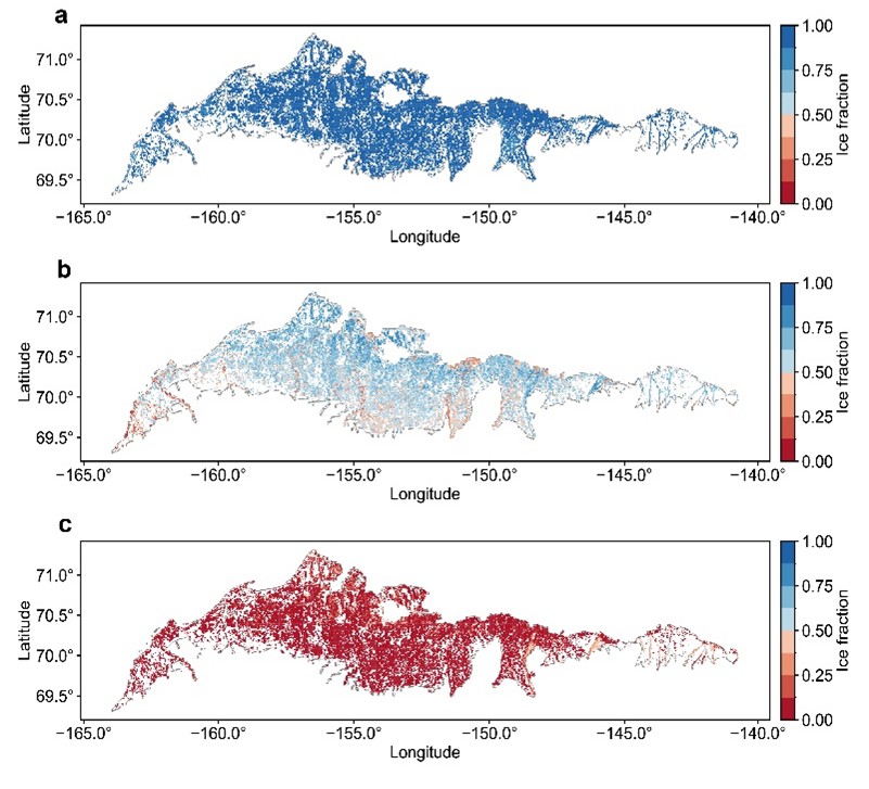 Lin, H., J. Du, and J.S. Kimball. 2025. ABoVE: Ice Fraction of Small Water Bodies in the Arctic Coastal Plain, 2017-2023. ORNL DAAC, Oak Ridge, Tennessee, USA. https://doi.org/10.3334/ORNLDAAC/2451